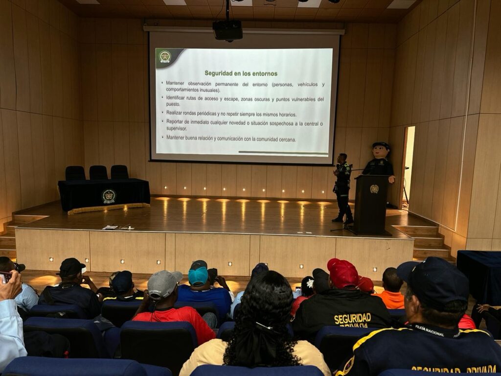 Durante el encuentro, se socializaron medidas de seguridad y autoprotección dirigidas a supervisores y guardas de seguridad, quienes prestan sus servicios en entidades públicas y privadas, fortaleciendo sus capacidades para actuar de manera preventiva y articulada con la Policía Nacional.